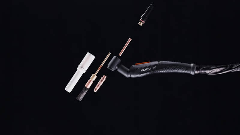 A TIG pisztoly könnyen átalakítható tisztítópisztollyá a fogyóeszközök cseréjével.