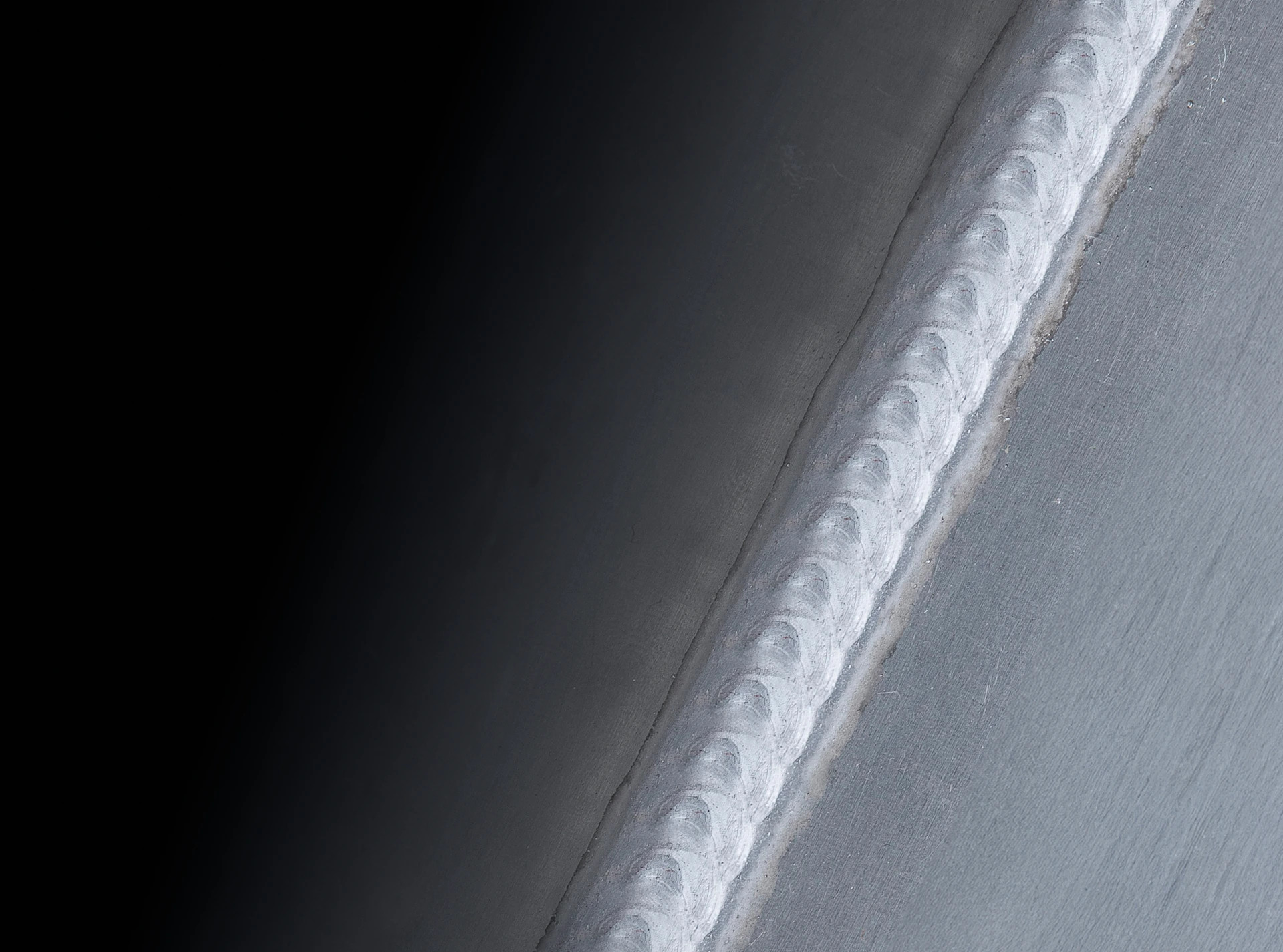 1. ábra: Kéthullámú MIG-hegesztés PB pozícióban. Alapanyag: AlMg 5083, Huzal: ER 5183 1.2 mm, Védőgáz: 100% Ar