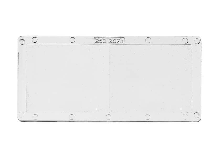 Nagyítólencse Kemppi hegesztősisakokhoz. A lencse mérete: 51 × 108 mm.