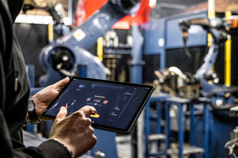 Az AX MIG Hegesztő könnyen integrálható robothegesztő rendszerébe. Széles körű csatlakoztatási lehetőségeket kínál, így új módokat nyit meg az ívhegesztő robot hatékonyságának növelésére. A rendszer intuitív távvezérlő felhasználói felülettel rendelkezik, amelyet a világ vezető UX csapata tervezett. Egyszerűen használható, és laptopról vagy mobil eszközről is elérhető webböngészőn keresztül.